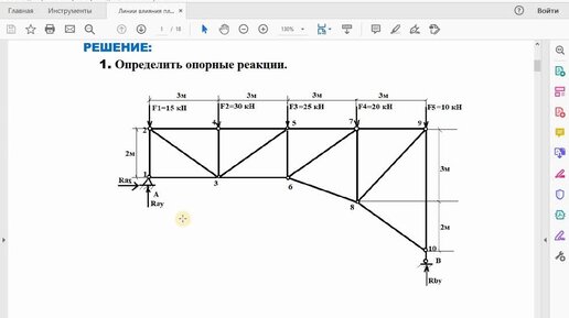 Линии влияния плоской фермы