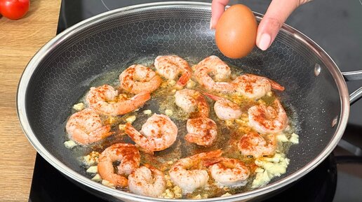 Впечатляющее блюдо 🔥 с яйцом и креветками.