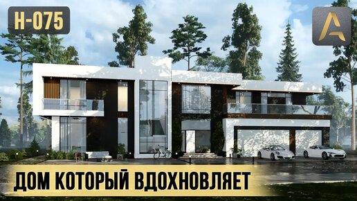 Вдохновляющий дом в стиле Хай-Тек. Проект дома с гаражом, террасами, спортзалом и кинотеатром