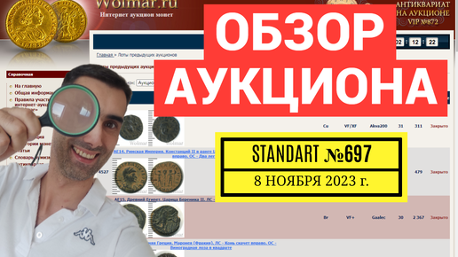 ОБЗОР Wolmar АУКЦИОН Standart №697 МОНЕТЫ от 8 ноября 2023г.