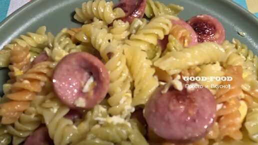 Макароны с сосисками и яйцом
