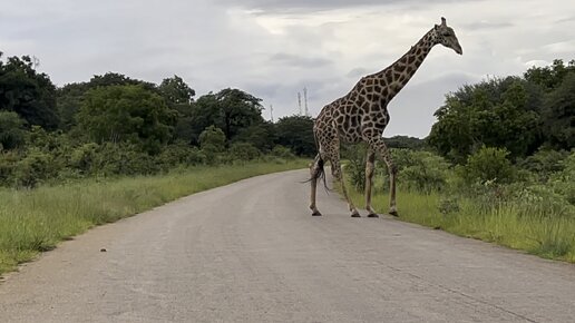 Внезапный жираф! На дорогах Зимбабве полно неожиданностей! Вот так выруливаешь из поворота и бац, сразу два жирафа.Это куда лучше чем слоны!