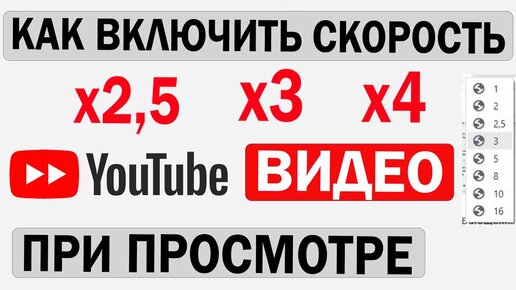 Как увеличить Скорость воспроизведения видео на YouTube х3 х4 х5 х16