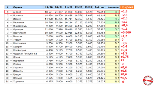 Таблица коэффициентов после 4 тура Лиги Чемпионов. Кто стал лидером недели? У России – (-2).