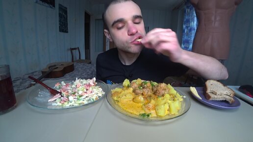 МУКБАНГ НАРЕЗКИ ЛУЧШЕЕ - КАРТОШКА С ТЕФТЕЛЯМИ / САЛАТ / Mukbang EATING / АСМР 10. 11. 2023 #971