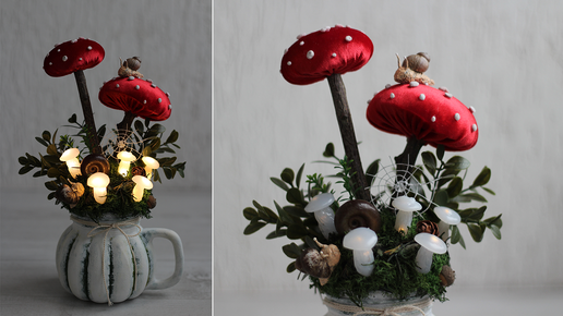 Композиция ночник - В сказочном лесу. Светящиеся грибочки своими руками просто / Творческое место