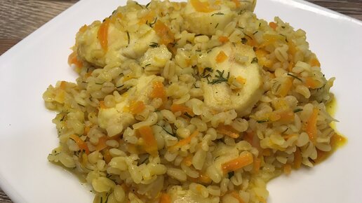 Булгур с рыбой на сковороде