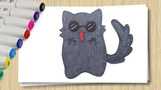 Простой рисунок КЛАССНЫЙ КОТ/Cool cat/Рисунок для начинающих