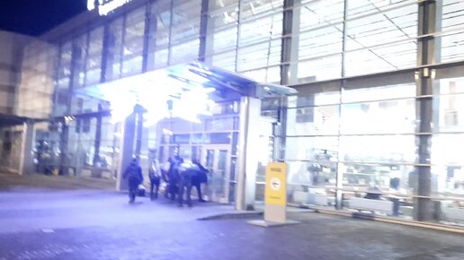 Перед входом в аэропорт Кольцово в городе Екатеринбурге ночью скоро вылетаю
