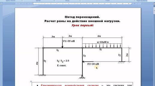 Метод перемещений Урок первый Расчет рамы