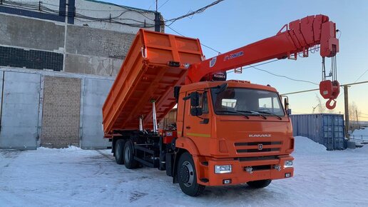 Разработали и установили самосвальную платформу + КМУ Kanglim KS1256G-II на шасси КАМАЗ-65115
