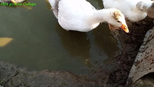 Строим дамбу на пруду. Гуси тут как тут! И кот не отстал от них!