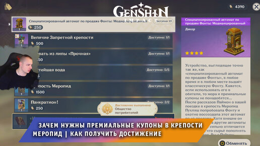 Геншин Импакт ➤ Зачем нужны Премиальные купоны в крепости Меропид ➤ Как получить достижение ➤ Прохождение игры Genshin Impact