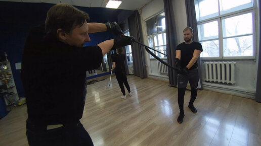 Фехтование мечом катаной -показ, отведение меча нажимом и удар кругом восемь маваси вадза по руке