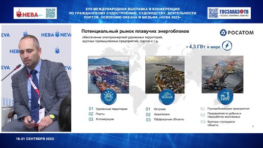 НЕВА 2023: Плавучие энергоблоки как современный и экологичный способ энергообеспечения. Аптекарев Владимир, АО «Атомэнергомаш».