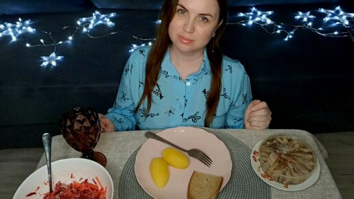 МУКБАНГ Пробую новогодний салат Огнедышащий Дракон. Горячая картошка с нежной селедочкой.
