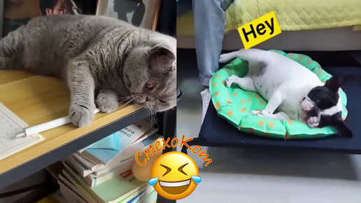 Смешные кошки и собаки. Забавные животные) Прикольные видео часть 58.