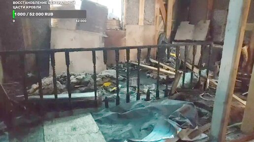 ремонт крыши после пожара - уборка и демонтаж балок и опор кровли