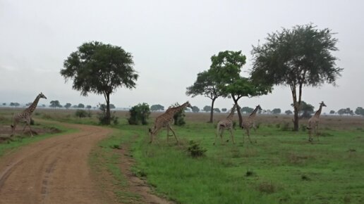 Жирафы в саванне в Танзании
