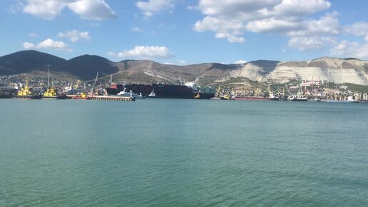 Как огромный корабль прибывает в порт Новороссийска