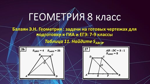 Геометрия 8 класс. Ищем площадь трапеции в задачах 26, 27 на готовых чертежах.