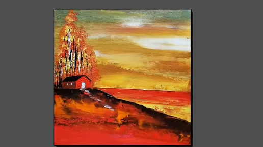 Красный дом у моря / Простая демонстрация пейзажной живописи акрилом для начинающих / Шаг за шагом #17