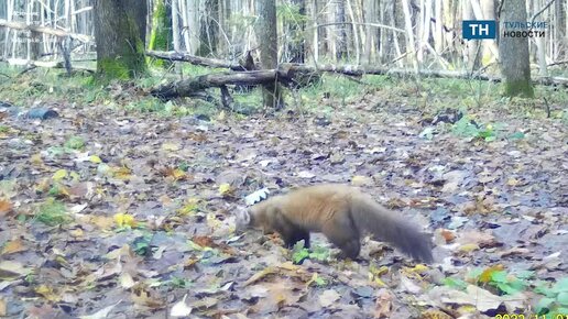 Куница попала в объектив камеры на границе Тульской и Калужской областей