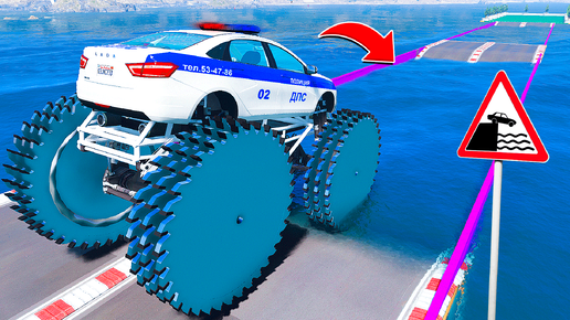 СМОЖЕТ ЛИ ГИГАНТСКАЯ ПОЛИЦЕЙСКАЯ МАШИНА С ПИЛАМИ ПРОЕХАТЬ ГЛУБОКУЮ ЯМУ С ВОДОЙ ГТА 5 ЭКСПЕРИМЕНТЫ