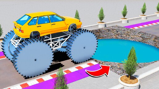 СМОЖЕТ ЛИ ГИГАНТСКАЯ РУССКАЯ МАШИНА С ПИЛАМИ ПРОЕХАТЬ ГЛУБОКУЮ ЯМУ С ВОДОЙ В ГТА 5 МОДЫ - GTA 5 MODS