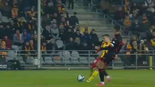 Левая нога вытянута навстречу мячу и почти касается её 😱