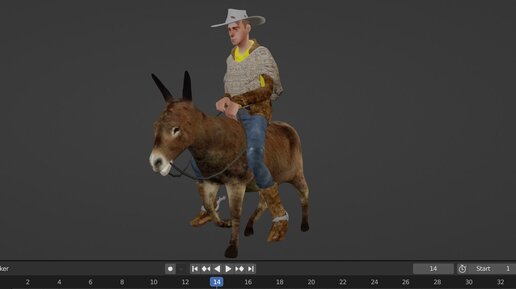 BLENDER 3.6 Главный герой на дикий запад и осел линковка