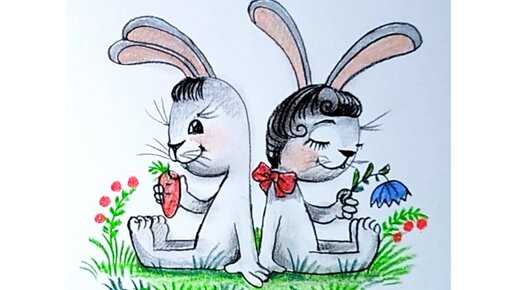 🐰🥕🐰Как нарисовать зайцев карандашами при помощи ножниц.
