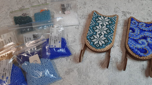 Санки новогодние. Готовая работа. Подбор бисера.
