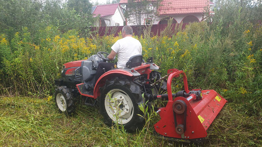 Покос травы МУЛЬЧЕРОМ при помощи японского трактора Mitsubishi GS 230 в Московской области.