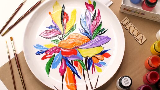 Роспись тарелки. Мастер-класс акрилом по стеклу и керамике "Decola"