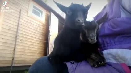 Хорошо сидеть на ручках и синхронно жевать в такт😁😁😁 Ульяна и Услада 4 и 3 месяца 😍 Архивное видео. #карликовыекозы #камерунскиекозочки