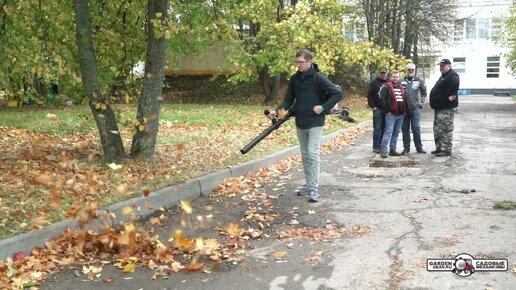 Воздуходувка бензиновая ранцевая Caiman Tornado PB700 в работе
