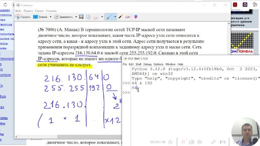 Красивая задача А. Минака № 7006 типа № 13 на IP-адресацию (ЕГЭ по информатике). Решаем устно, почти без программирования