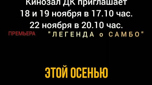 Приглашаем на фильм ЛЕГЕНДА О САМБО" 2D, 12+, 100 мин. Пушкинская карта #кинозалДКям