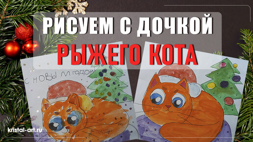 Рисую с дочкой рыжего кота. Акварель. Детский рисунок.