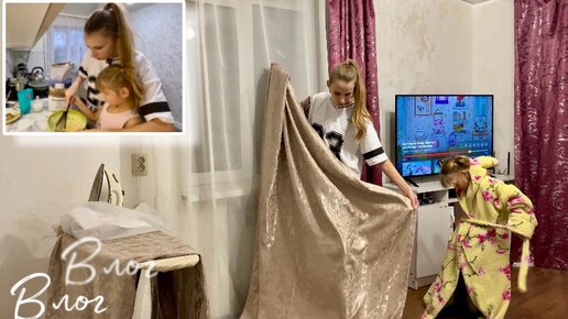 VLOG: Купила новые шторы в гостиную / Хозяйка приехала, готовим блинчики / Большая стирка