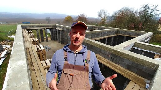 Возведение коробки дома. Заливка перемычек и монолитного пояса.
