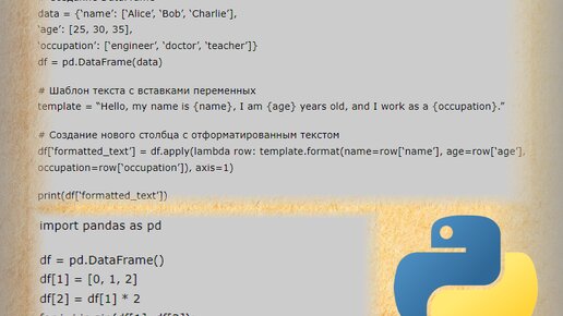 Как в текстовом шаблоне отобразить переменные из dataframe?
