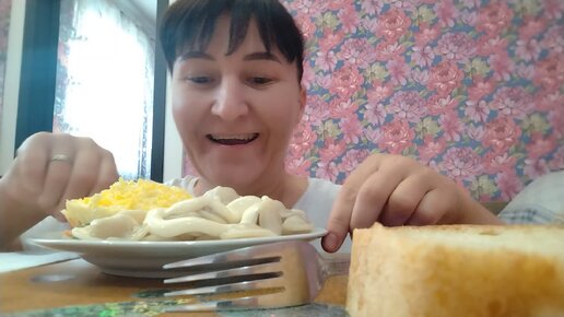 #мукбанг, пельмени с моим новым салатом👍🍓