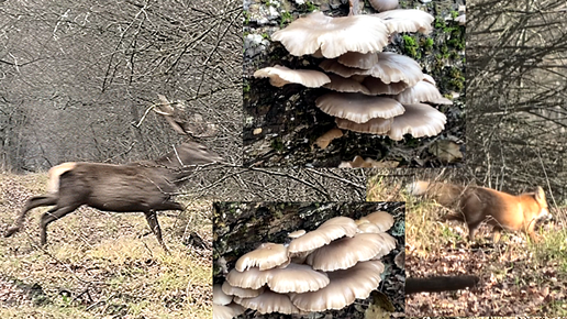 Олени, вёшенки, лиса в лесу в ноябре #олени #грибы #вешенки #лиса