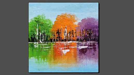 Демонстрация абстрактной живописи / Зеленый, оранжевый и фиолетовый пейзаж / Для начинающих #21