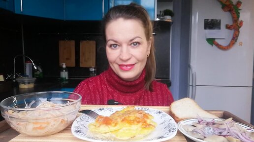 МУКБАНГ МЯСО С КАРТОФЕЛЕМ ЗАПЕЧЁННЫЕ ПОД СЫРОМ/СЕЛЕДОЧКА/КАПУСТА/MUKBANG HALK FAMILY ЕДА ОБЖОР