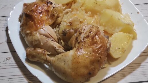 Курица Запеченная с Квашенной Капустой и Картофелем