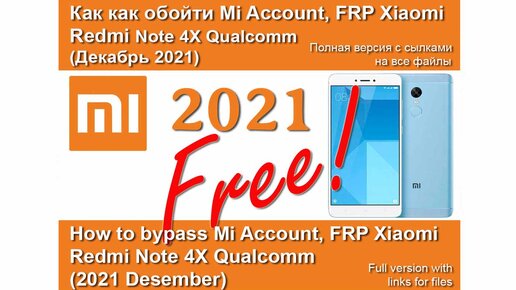 Redmi Note 4X Mi Account | FRP Google Account Как Удалить Бесплатно