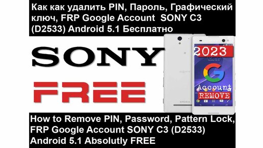 Sony C3 D2533 PIN, Пароль, Графический ключ, FRP Google Account как удалить Бесплатно. Android 5.1